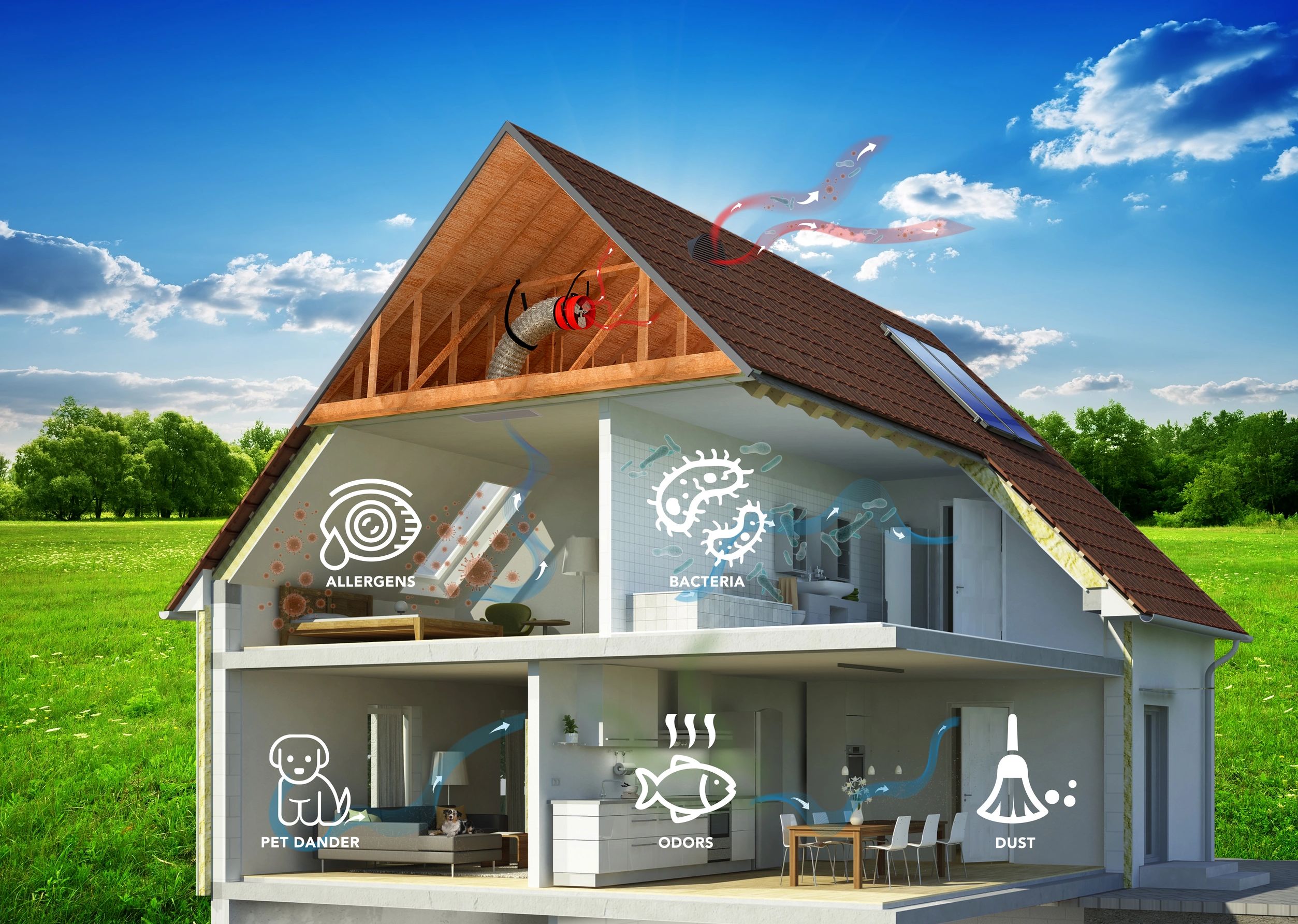 A Whole House Fan is essential in every home across the country because of the plethora of benefits it offers. It does not simply cool your home, or save it up to 50-90% on A/C costs but it flushes out airborne pathogens, smoke, VOC gases, poor smells, stale air, and helps keep your attic and home safe from water damage. These numerous benefits that are not seen with any other whole-home system make a QuietCool Whole House Fan absolutely necessary in your home.
