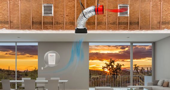 A whole house fan is a ventilation cooling system that uses less energy than a traditional air conditioner. This energy-efficient system works by pulling cool, outdoor air into your home & out your attic vents. This process enacts Thermal Mass Cooling, keeping your home cooler, longer.